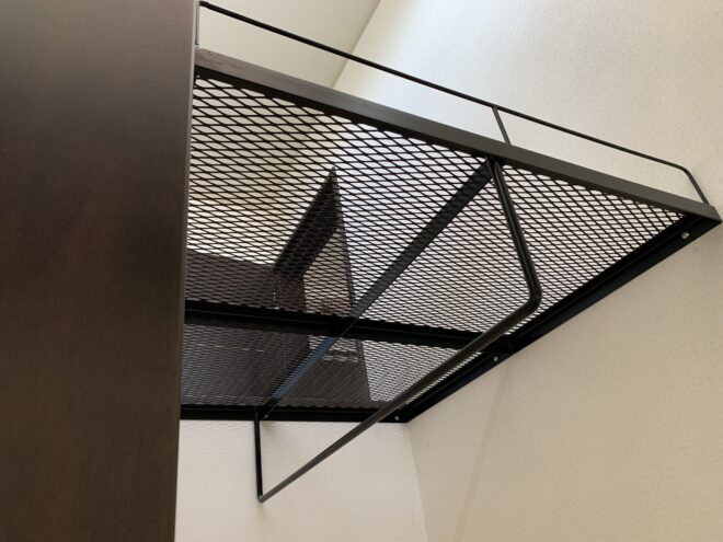 でも、今回のアイアンラックは階段上部で人の頭上に取り付けるものです。