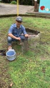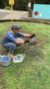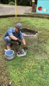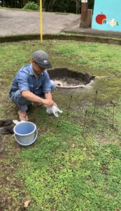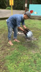 消火が確認できたら燃えカスや炭のカスがメッシュに残ったままの状態で、ゴミ袋を用意してメッシュを外します。
