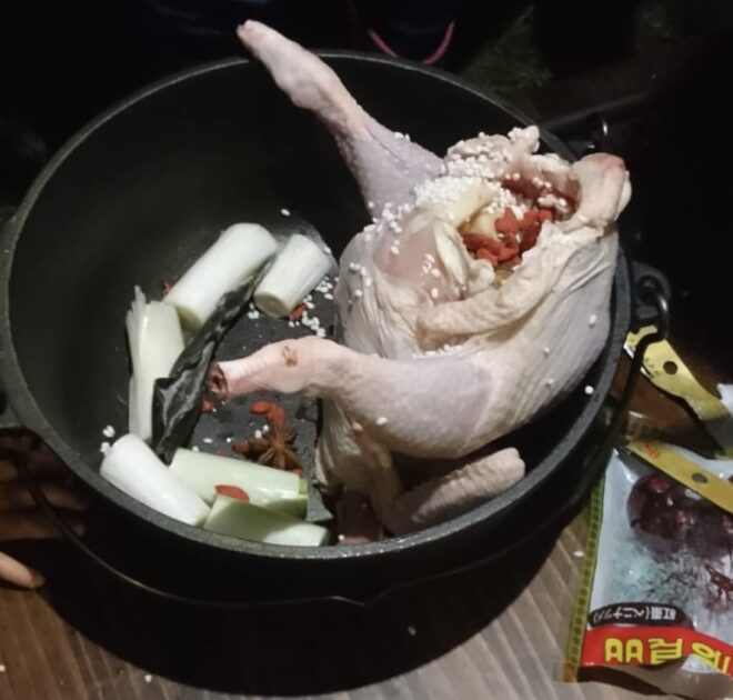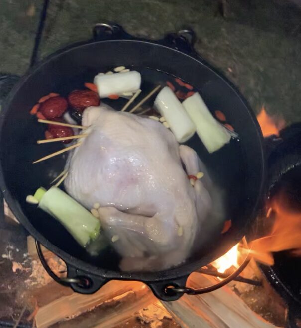 そんな参鶏湯をキャンプの時に朝食べたら良いだろうと思い、ダッチオーブンで作った事があります。