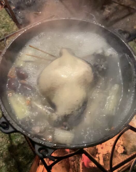 具材を詰め込んだ丸鶏をひたすら煮込むだけでした。笑