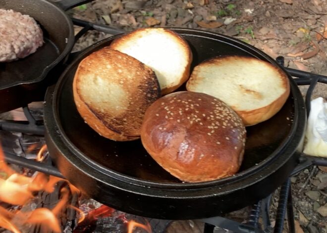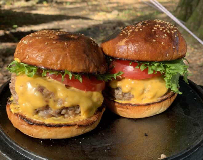 キャンプ時の設営後や、翌朝の朝食にサクッと食べられるハンバーガー。