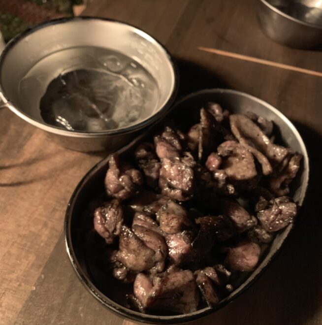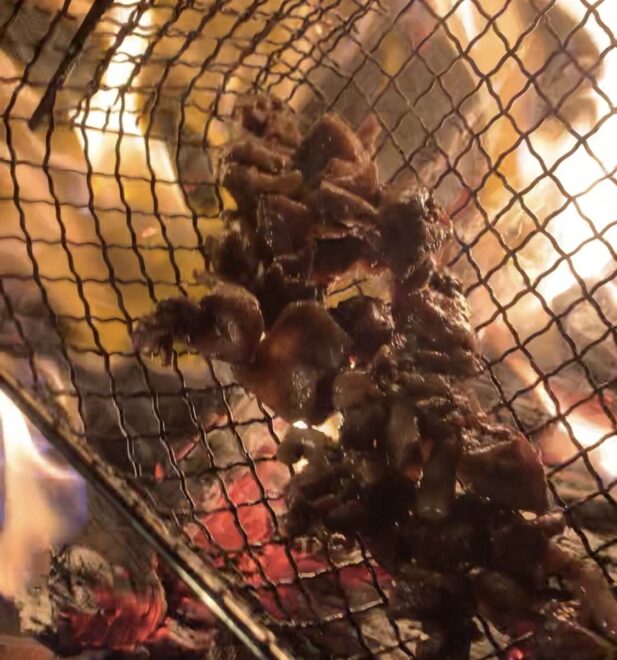 火柱で炙り焼きにする料理といえば真っ先に鶏が出てくると思います。