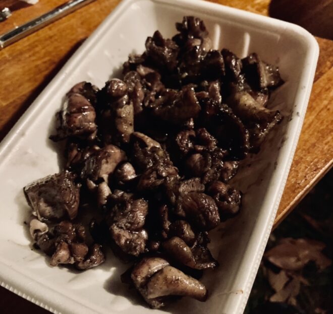 それは宮崎人なら誰もが知っている、鶏の炭火焼きならぬ鶏の焚き火焼きです。笑