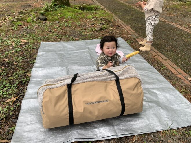 今回購入したシェルターは、中に寝室のテントを入れても十分に広い空間を作ることができます。