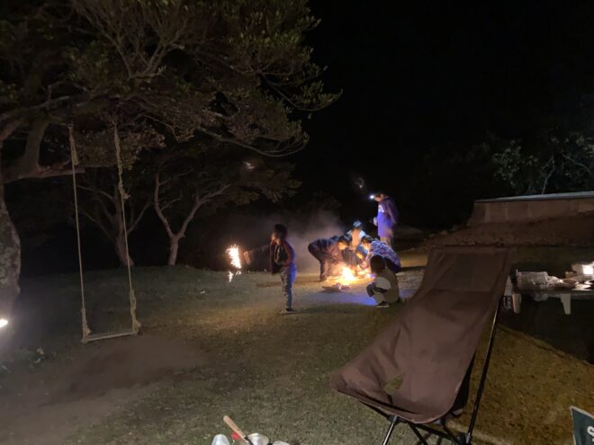 子供がたくさんいて夜はみんなで花火はお約束ですね♪