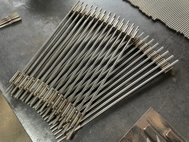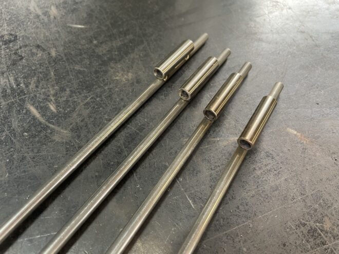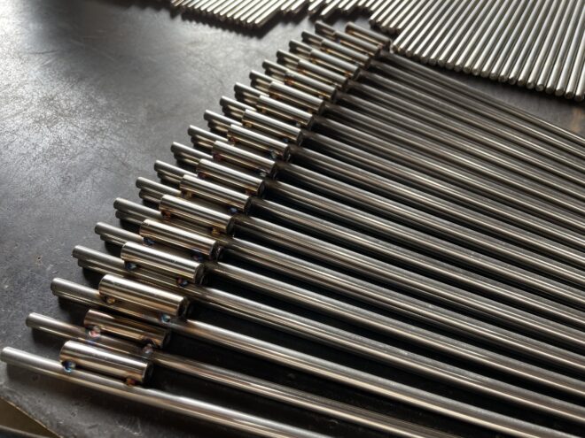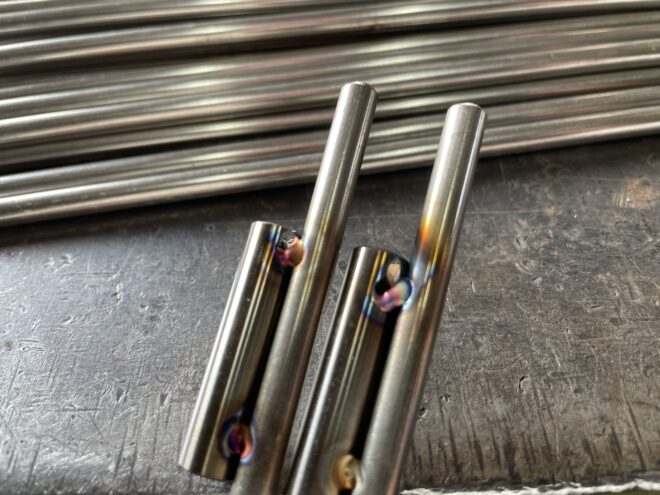 前回製作した9mmのパイプを6mmの丸鋼に溶接していきます。