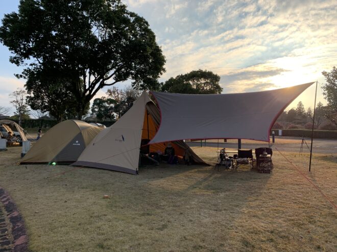 昨年末のファミキャンでの設営ですが、一泊ではもうやりたくないです笑