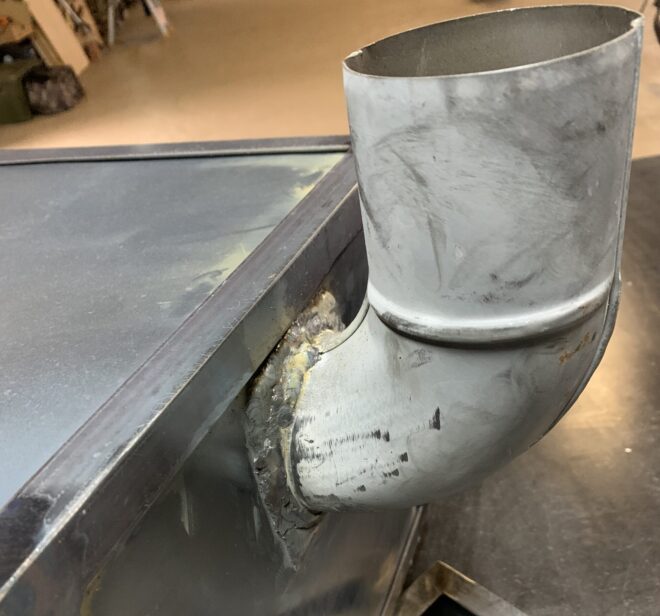 ちょうど燃焼室の側面に取り付けるエルボも同じ75mmのものがあったのでバッチリでした。