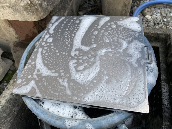 何よりまずは、鉄板を綺麗に中性洗剤で水洗いします。