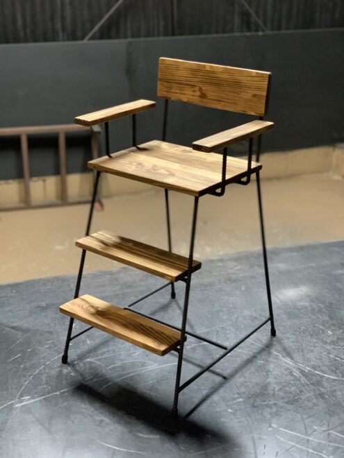 安定感以外に意識したところは、落下防止用の肘掛けと、踏み板です。