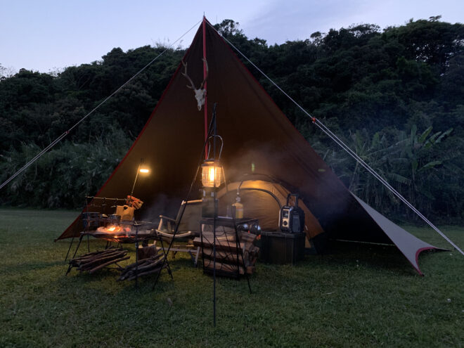 そして、低めにセットすれば、焚き火をすることによりタープの下には熱がこもりとても暖かく過ごせます。