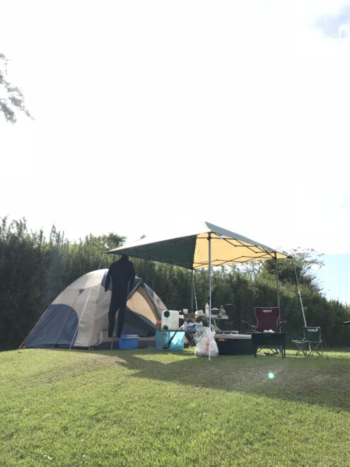 その当時は本当の初心者で、道具もほぼなくてテントと折りたたみ式のテーブルとチェアが一緒になったものとBBQコンロぐらいでしか持っていませんでした。