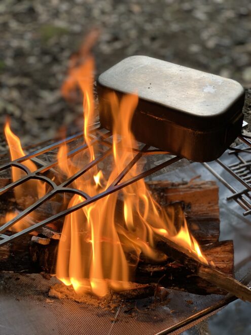 私の考える『コツ』とは、とにかくはじめは焚き火の火をしっかりと当て、飯盒などの調理器具の蓋が浮き上がるくらい強火で沸騰させることかなと思います。