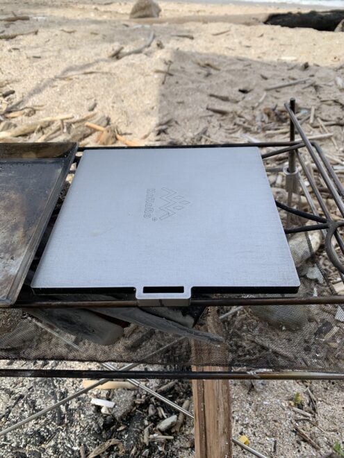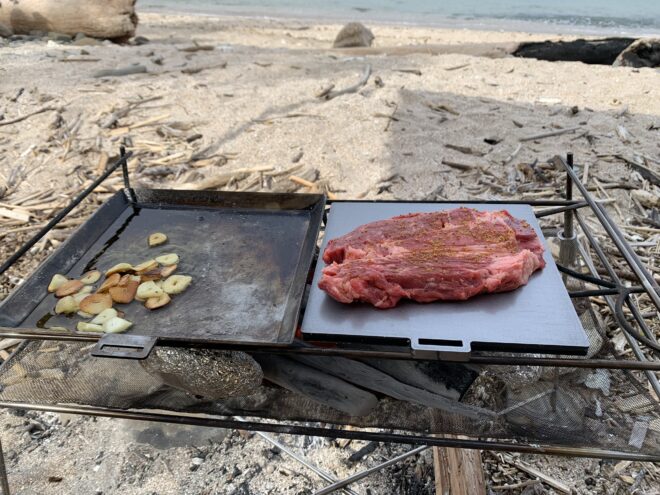 それ以外は焚き火台を使って炭火で鉄板とフライパンを加熱して料理しました。