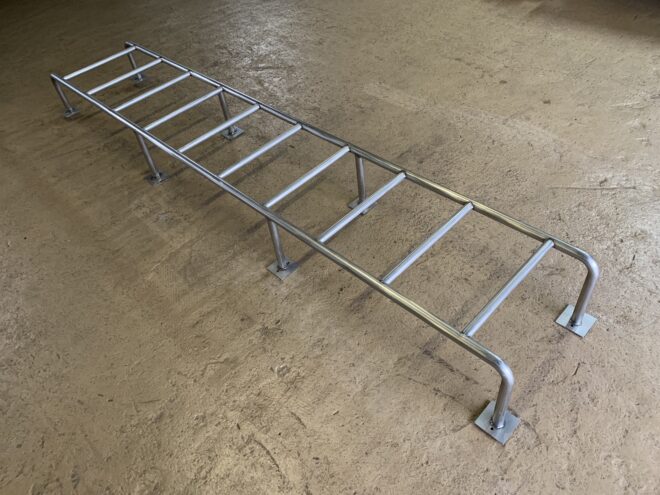 フレーム2本に対してグリップバーは左右対称に300mmピッチで合計10本取り付けます。
