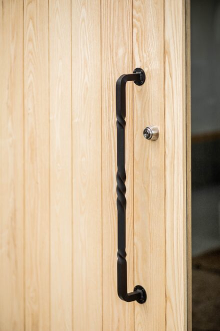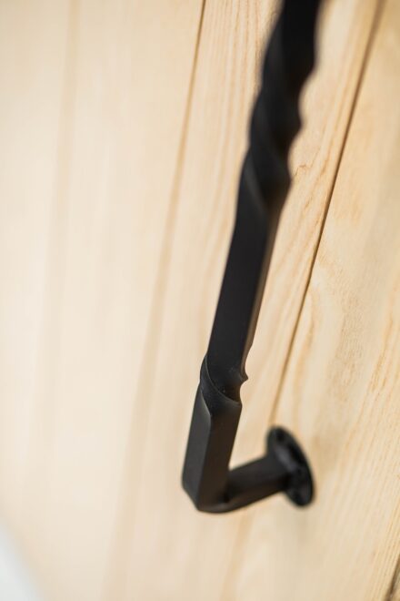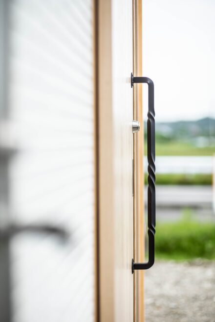 先日製作したアイアンドアハンドルの取り付けが完了しました。