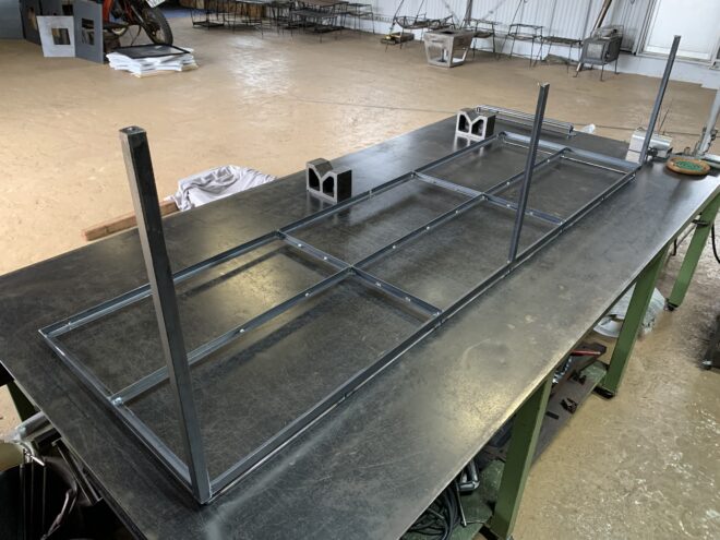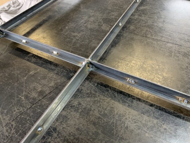 長さも幅もそれなりにあるものなので、アングルで枠を組んでも中に補強を入れなければなりません。