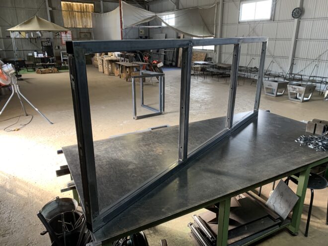 先日製作した鉄骨の柱や梁と同様に、今回も角パイプを使った製作物です。
