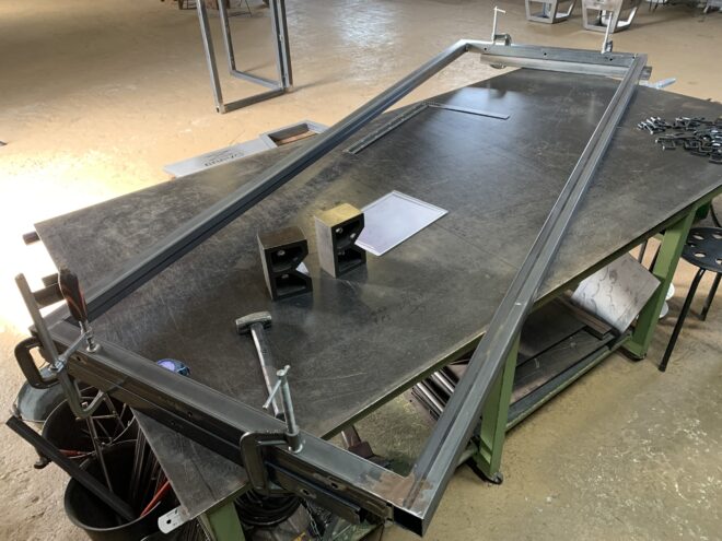 角パイプを使った製作物は、一辺が大きくなればなるほどシンプルな枠組みだけでも簡単ではありません。