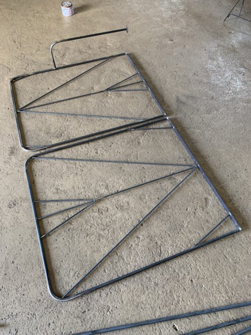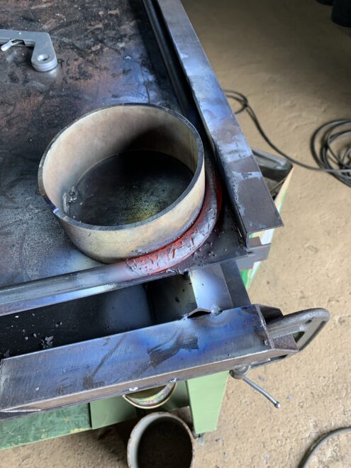 材料は13mmの丸鋼を曲げて枠組みを製作します。