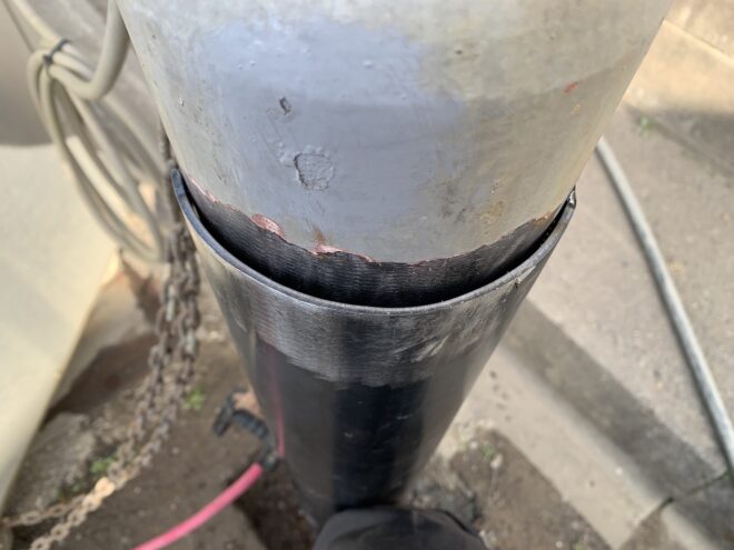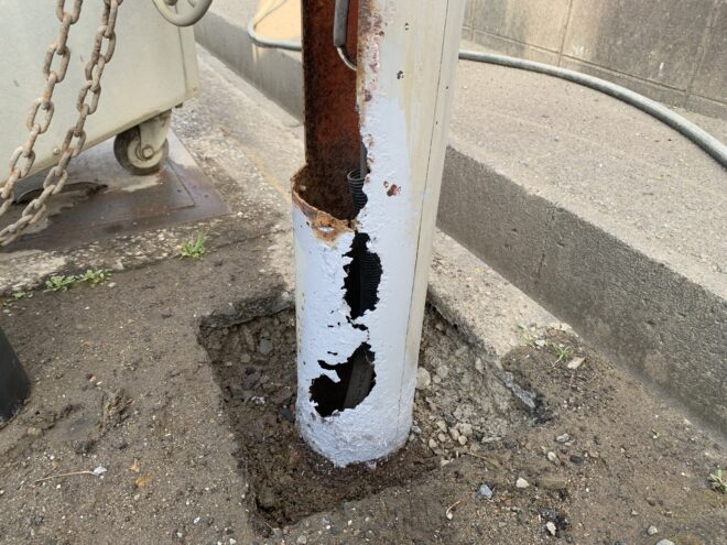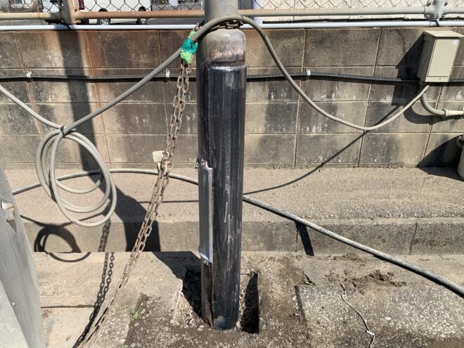 根元が劣化した街灯の補修方法は、その劣化した箇所に鉄板を貼り付けて補強するくらいしか方法はないと思います。