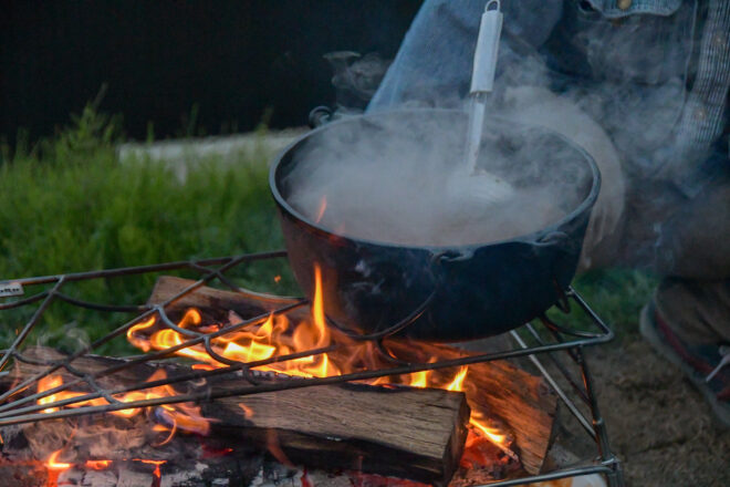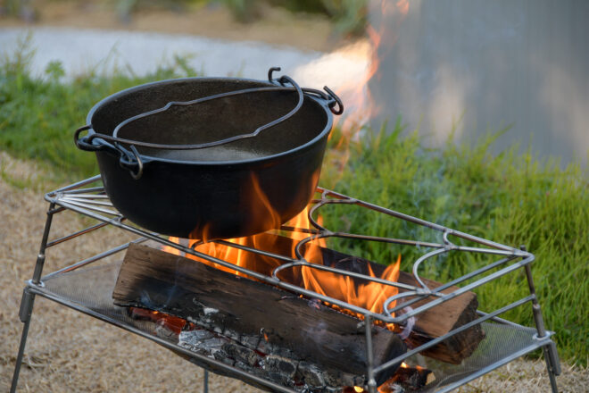 大きなダッチオーブンを置いてもまだスペースにゆとりがあるサイズ感