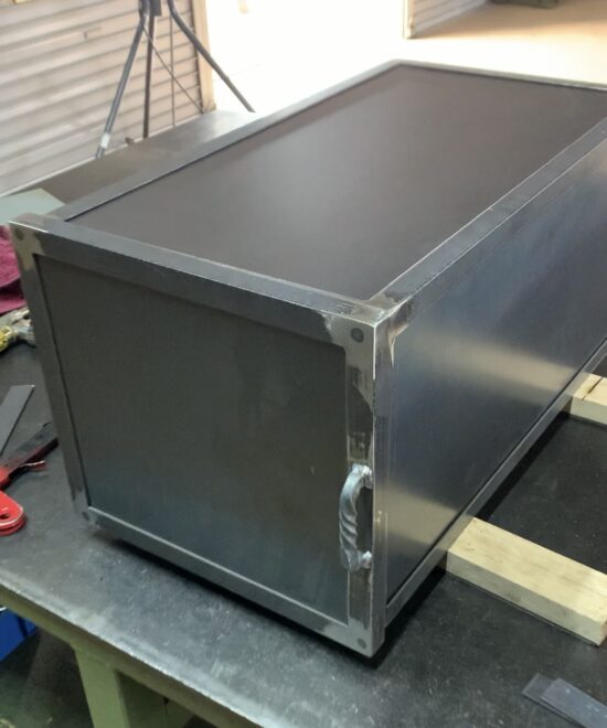 本体自体は工場にある鉄製の作業台に乗せて、吸気は正面の扉の開閉で調整してみようという考えでした。