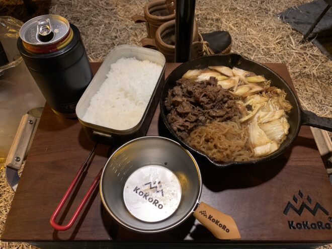 今回のキャンプ飯はすき焼き定食でした♪