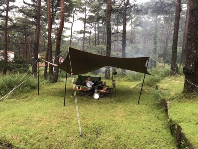 そんな状況なら設営場所によっては、晴れの日と変わらず乾燥撤収できるし、雨キャンプも体験できて一石二鳥です。