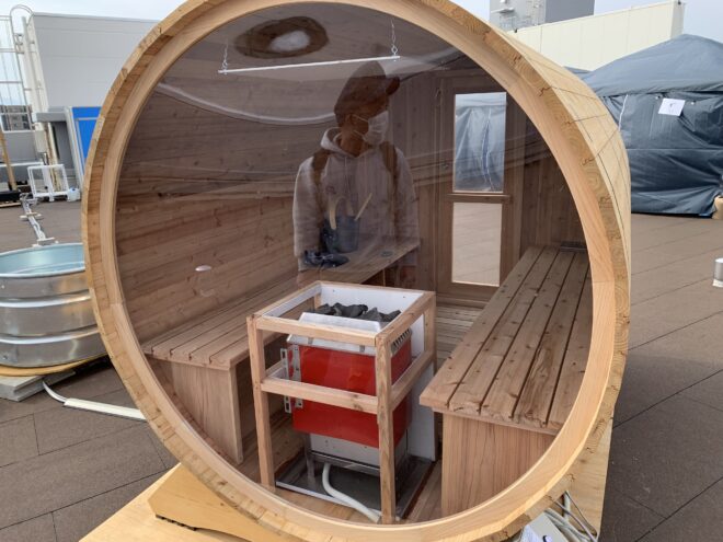 熱を逃さないのかが気にはなりましたが、これを景色のいいところに設置してサウナを楽しめば雰囲気で気分も最高だろうなと思いました。